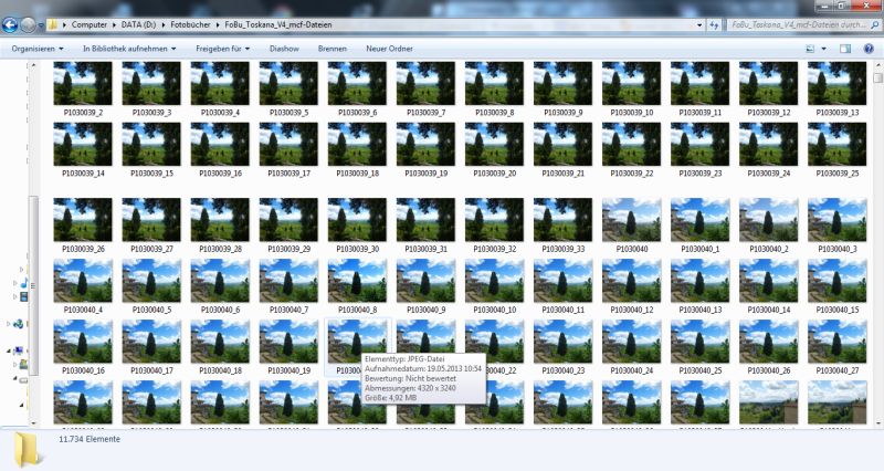 Die frage wie kann ich mengen an bearbeiteten fotos in das fotobuch bringen, in der vergangenheit ging das : einfach in den mcf ordner kopieren, dabei die dateiendung von JPG auf JPEG vorher aendern. Natuerlich muessen diese geaenderten dateien auch im originalordner stehen. Die einzelnen dateien mit geaendertem namen vorher aus dem mcf ordner löschen.