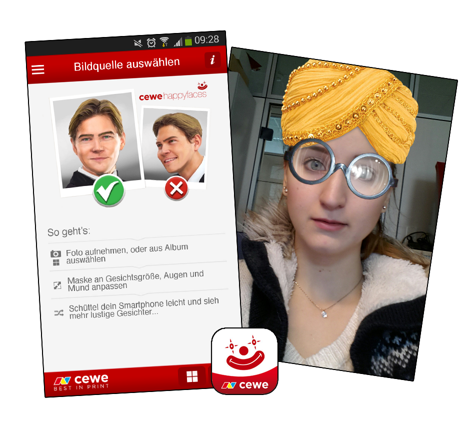 Der Sommer geht, der Herbst kommt und damit leider oft auch Regenwolken. Als passendes Mittel gegen dieses triste Wetter haben wir für Smartphone- und Tabletnutzer jetzt jedoch eine App herausgebracht, die Sie die grauen Wolken schnell vergessen lässt: CEWE Happy Faces. Für flinke Finger, die gerne eine kleine Überraschung für Ihre Liebsten vorbereiten wollen, hier noch eine bunte Idee: Sie haben vielleicht noch Schere und Kleber zur Hand? Umso besser! Mit wenigen Handgriffen können Sie Ihr gedrucktes Bild zu einer last minute Überraschungskarte machen. Schneiden Sie dafür beispielsweise eine Comicsprechblase aus weißem Karton oder Papier und kleben Sie diese auf Ihr ausgedrucktes Foto. Nun können Sie hier Grüße oder einen lustigen Spruch hinterlassen. In einem Präsentkorb platziert oder einfach nur an den Kühlschrank geklebt, bringen Sie Freunde und Familie mit Sicherheit zum Schmunzeln. Ob Sie die Bilder nun drucken oder einfach nur auf Ihrem Handy betrachten, bleibt natürlich Ihnen überlassen. Die Hauptsache ist, dass Sie andere oder vielleicht sogar sich selbst ein wenig aufmuntern. Vergessen Sie den tristen Alltag und gönnen Sie dem Kind in sich ein paar Minuten albern zu sein. Testen Sie unsere CEWE Happy Faces App jetzt auf Ihrem Tablet oder Smartphone :) Liebe Grüße