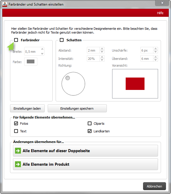 ja, die dünnen Farbränder wären sichtbar, wenn du das Fotobuch so drucken lassen würdest. Inzwischen ist es nämlich möglich, gleichzeitig Maske und Farbrand auf ein Bild anzuwenden. Du kannst die Farbränder löschen, indem du im Dialog "Farbränder und Schatten" den Haken bei "Farbränder" entfernst. Dabei kannst du auswählen, ob der Farbrand bei der aktuellen Markierung (ein oder mehrere Bilder markiert), auf der Doppelseite oder im ganzen Projekt entfernt werden soll. Je nachdem, ob du mehr Masken oder mehr Farbränder verwendet hast, kann es schneller sein, die Farbränder einzeln zu entfernen oder im ganzen Projekt zu entfernen und einige neu einzufügen. liebe Grüße