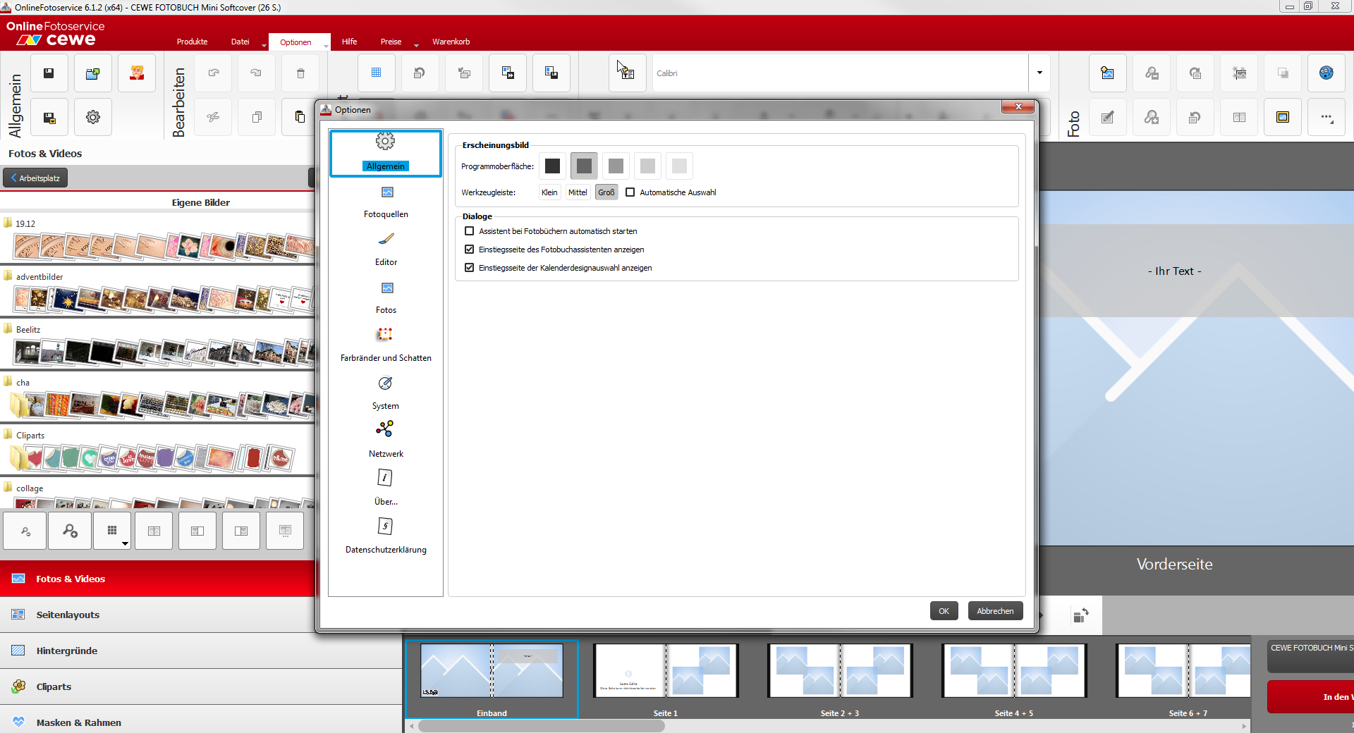 Layout/Schriftgröße CEWE Fotobuch Software