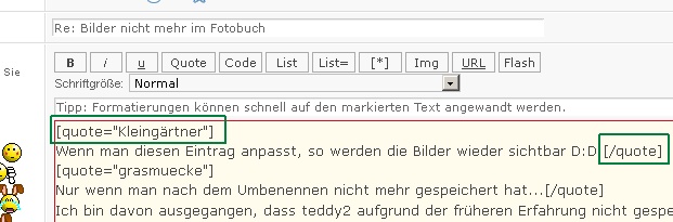 Re: Bilder nicht mehr im FotobuchKleingärtner hat geschrieben: Hallo,