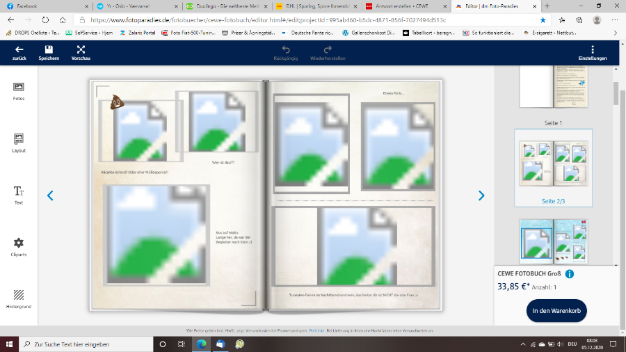 Der Editor kann nicht mehr auf die persönlichen Fotos zugreifen und zeigt daher das "Broken Image" stattdessen (das, was auch gekommen ist, als die Bilder für die Hintergründe nicht ausgeliefert wurden). Sieht gleich/ähnlich aus, hat aber eine andere Ursache. Ich vermute ein Reload wurde schon versucht. Die Ursache dürfte sein, dass die Editor-Sitzung ausgelaufen ist und deshalb der Zugriff auf Ihre Fotos verwehrt wird. Wenn sie nach oben scrollen und auf das Icon für "Mein Konto" schauen, ist das mit einem Häkchen versehen? Ein Klick auf "Anmelden" in dem Pop-Up und anschließendem Login könnte das Problem dann lösen. Ansonsten ist evtl. ein erneutes Laden Ihres Projektes notwendig - hierbei fallen sie allerdings dann auf den Stand zurück, der zuletzt erfolgreich gespeichert wurde (ich hoffe Sie haben Ihr Projekt zwischendurch auf dem Server gespeichert). Gehen Sie dazu bitte auf "zur Kontoübersicht", von dort zu "Meine Projekte" und klicken das Projekt dann an (es wird dann im Editor wieder geöffnet). Viele Grüße, Michael Re: Hintergrund grünDa war tatsächlich kein Häkchen drin. Ja, ich bin dauernd am speichern, weil ich immer Angst habe, es könnte was verschwinden. Und nach deiner Anleitung: traraaaa! alles wieder da!! Was bin ich froh!! Danke!! Hoffe, es war was im Nikolausstiefel heute, du hast es verdient!!
