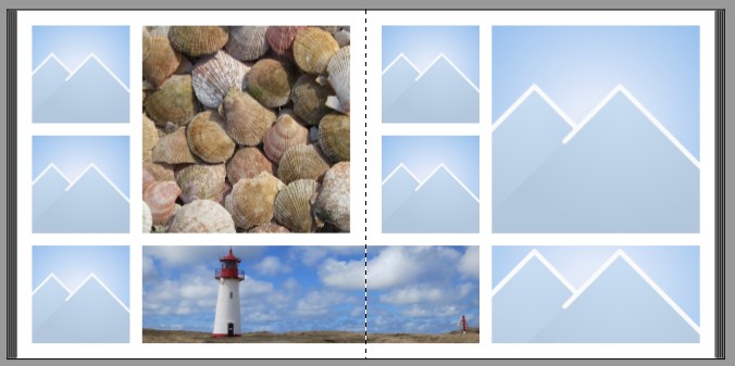 ich bin mir nicht sicher, wie Deine Frage genau zu interpretieren ist. Du kannst jeden Rahmen einfach vergrößern und über die Mitte ziehen. Das ist unabhängig ob sich darin ein Bild oder eine Collage befindet. Oder geht es Dir speziell um eine Gestaltung mit mehreren Bildern ? Je nach Buch-Art solltest Du darauf achten, dass z.B. Gesichter nicht genau in der Buchmitte sind, und die ggf. im Falz verschwinden. Gruß DSL-schnell Gruß DSL-schnell