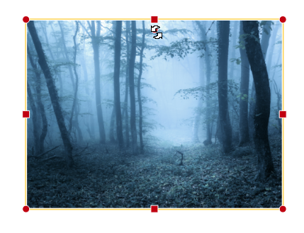 In unserer CEWE FOTOWELT und FOTOBUCH Software können Sie Ihre Bilder auf zwei verschiedene Weisen drehen. Die erste finden Sie direkt in Ihrem Editor, wenn Sie ein Bild einfügen oder anwählen. Denn dann sehen Sie an der oberen Kante in der Mitte einen roten Punkt. Wenn Sie Ihre Maus auf diesen bewegen, wird Ihr Mauszeiger zu zwei Pfeilen. Dieses Symbol bedeutet, dass Sie Ihr Bild nun drehen können.