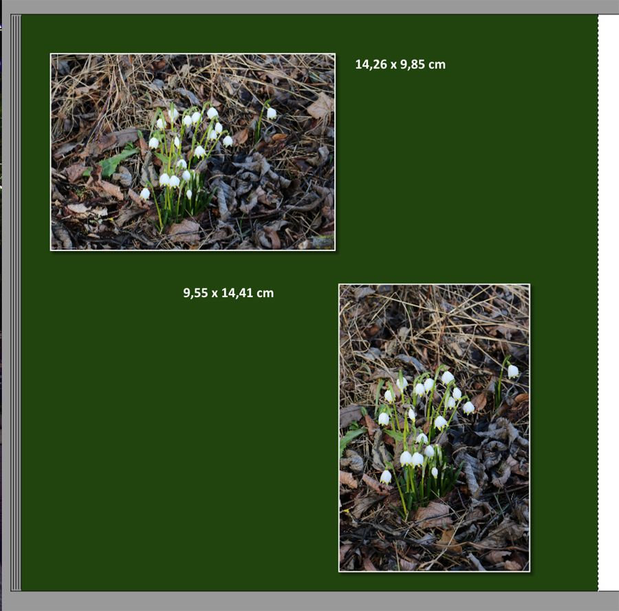 hab da mal wieder eine Frage, die sich mir m.E. erst seit 6.1.3 stellt. Ich erarbeite meine FB meist im sog. A4 Hochformat (auch wenn das bei CEWE anders heißt Wenn ich ein querformatiges Foto einfüge hat dieses eine deutlich andere Größe (7,69 * 10,25 cm) als ein hochformatiges Foto( 13,51 * 10,13 cm). Man könnte meinen, dass die cm-Maße bis auf die Ausrichtung eigentlich gleich sind. Hab mal ein Beispiel angehängt. Vielleicht gibt es eine Erklärung. VG Blicki