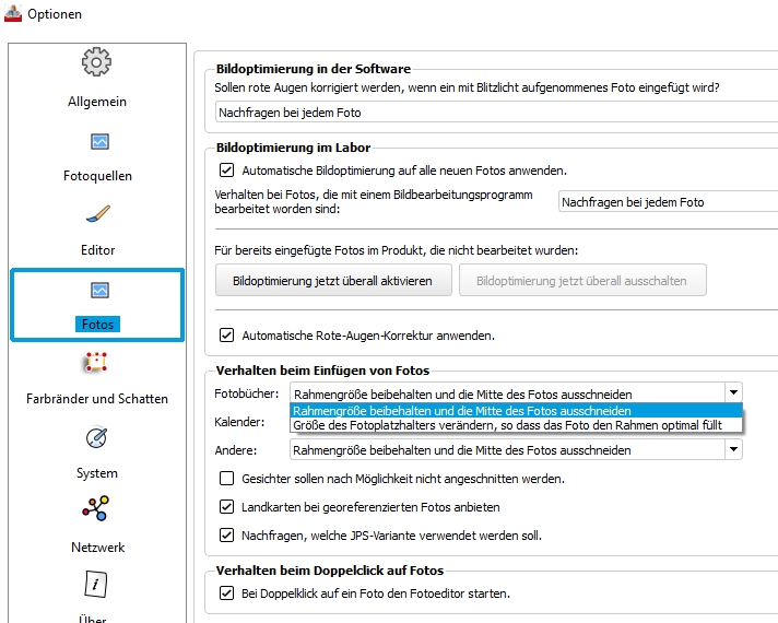 ich gebe Ihren Wunsch gerne an die zuständige Abteilung weiter. Wäre es eine Lösung, wenn Sie in den Optionen zusätzlich "Bei jedem Foto nachfragen" einstellen könnten? Sylke Re: Rahmen füllen mit/ohne Anpassung der BildgrößeHallo Sylke,