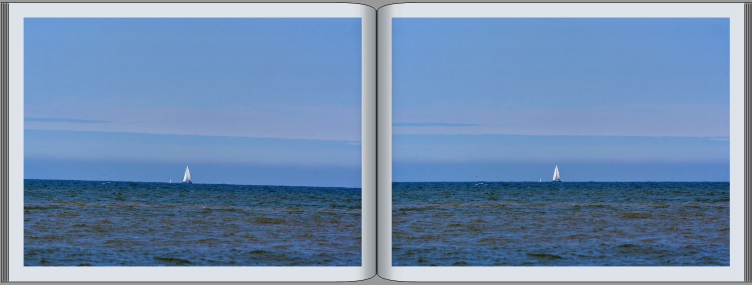 Beim linken Bild springt einem der schiefe Horizont beinahe ins Auge und man macht sich Sorgen, dass das kleine Segelboot kentern könnte. Das rechte Bild wirkt dagegen einheitlich und ruhig.