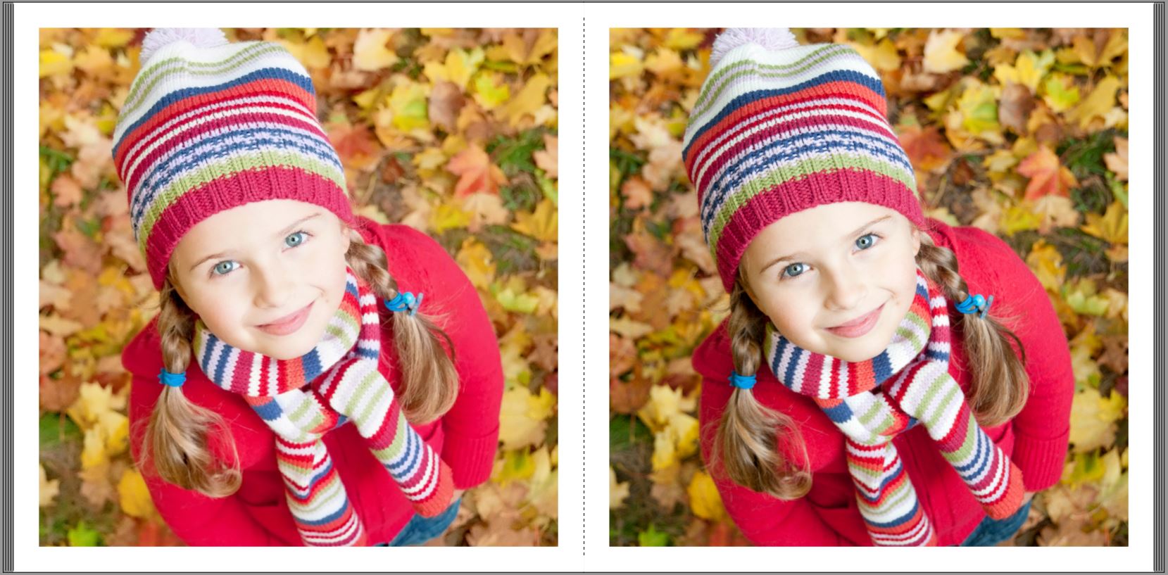 Da ich die Funktion "Strahlende Augen" auf 200 % gesetzt habe, fällt gerade diese Änderung besonders auf. Die Augen des Mädchens stechen noch mehr hervor, ohne dass es unnatürlich wirkt. Außerdem habe ich die Schatten etwas vertieft, sodass das Bild mehr Tiefe bekommen hat und detailreicher wirkt.