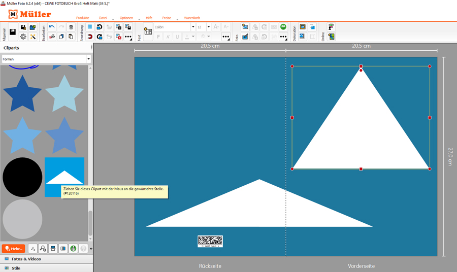 --------------------------------------------------- Re: Clipart auf Cover nicht skalierbarRotuma hat geschrieben: Ist das Clipart eines mit Veredelung? Denn diese können nicht vergrößert werden. Ich finde nicht einmal ein Dreieck ohne Veredelung, auch nicht unter den Downloads.