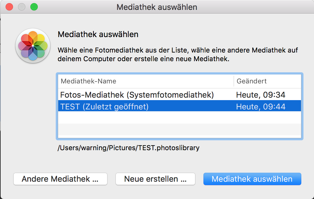wenn Sie auf "Im Finder anzeigen" klicken, wird Ihnen dann die richtige Mediathek angezeigt? Sollte dies nicht der Fall sein, starten Sie die Anwendung Fotos bitte mit gedrückter ALT-Taste und wählen Sie die richtige Mediathek aus. Sollte dies nicht die Ursache sein, ist möglicherweise der Stream defekt. Probieren Sie dann bitte Folgendes: 1. Halten Sie die ALT-Taste gedrückt und starten Sie dabei die Anwendung Fotos 2. Erstellen Sie eine neue Bibliothek mit "Neue erstellen" 2. Starten Sie Fotos, legen Sie dort ein neues Album an und füge 2-3 Bilder zum Testen hinzu. 3. Starten Sie die CEWE FOTOWELT und rufen Sie "Fotos" über den bekannten Weg auf. Sylke Wer ist online?Mitglieder in diesem Forum: 0 Mitglieder und 62 Gäste