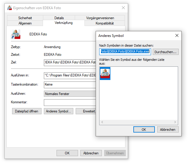 vermutlich ist nur die Symbolzugehörigkeit verloren gegangen. Klicken Sie bitte einmal eines der Icons mit der rechten Maustaste an und wählen Sie im Kontextmenü den Punkt Eigenschaften. Wählen Sie die Registerkarte Verknüpfung und klicken Sie im unteren Bereich bitte auf Anderes Symbol. Wird Ihnen wie in meinem Fall das richtige Icon samt Pfad angezeigt? Sylke Re: Verknüpfung (Icon) auf Desktop ist weißSuper, Silke, das ist die Lösung