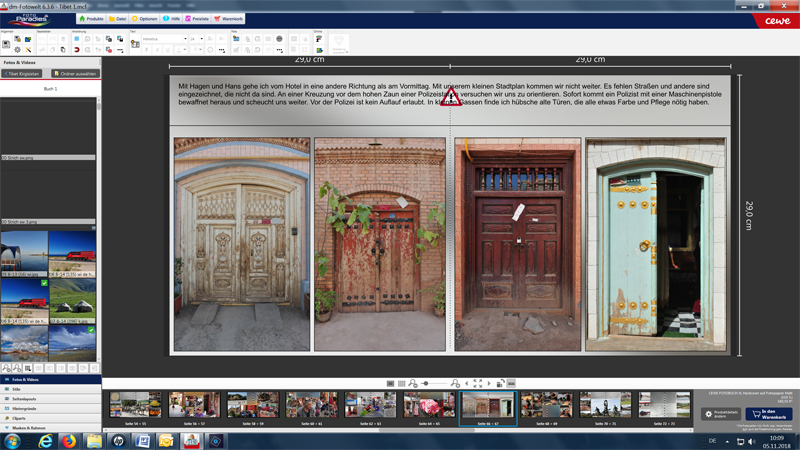 Re: krumme Linie unklarer HerkunftAlso unter Zeitdruck ... denn die Freunde warten schon auf die Lieferung von zwei mal drei Bänden. Heute schaute ich mir das Buch auf der Seite as photoprint.com an, dies ist die Seite 66/67. Dort ist schon wieder dieser Strich da. Also ich möchte diese Bücher wirklich ohne diesen krummen Strich. Ich gebe mir genug Mühe beim Erstellen der Bücher und bin schon etwas ungehalten. Vielleicht kann mir Sylke weiterhelfen.