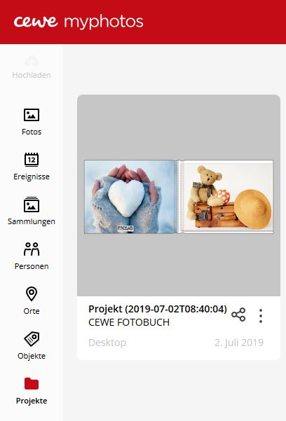 Des Weiteren können Sie cewe myphotos über einen Browser aufrufen. Über diese Anwendung können Sie alles einsehen, auch Ihre Projekte, und diese bei Bedarf mit anderen teilen. Die Adresse lautet: https://www.cewe-myphotos.com/