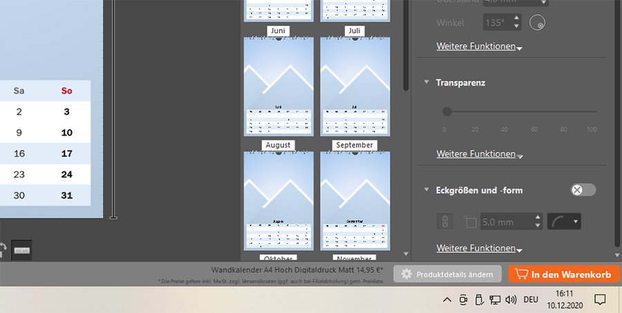 Also, mein Kreativkalender ist fertig. Das Menü ist gut jetzt und alles funktioniert. leider kann ich den Kalender nicht speichern oder in den Warenkorb legen :-(