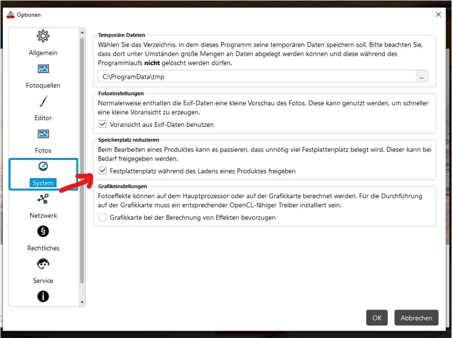 ich musste auch erst mal suchen. Gehe bei Cewe unter Optionen - System Setze bei Speicherplatz reduzieren ein Häkchen. Es werden dann meines Wissens nach nur die im Fotobuch aktuell verwendeten Fotos gespeichert. Du sparst dadurch viel Speicherplatz! Liebe Grüße Asiafan