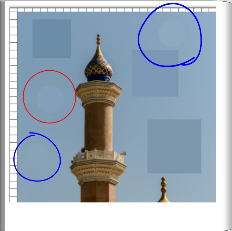 Silber-Distel Re: Farbton von Bildschirm wählenIn meiner Version (Win 10, 7.2.2) kann ich das Problem nicht wirklich nachstellen. Ich habe dafür das Beispielbild mit den dunklen Quadraten genommen und an drei verschiedenen Stellen Farbkreise eingefügt. Damit man sieht, wo sie überhaupt sind (zumindest der dritte ist kaum zu sehen) habe ich sie eingekreist. Wenn überhaupt sind die Kreise ein bisschen heller, aber auf keinen Fall dunkler. "Eigentlich" bin ich mit allen drei Kreisen recht zufrieden, da sie die aufgepickte Farbe (jeweils in unmittelbarer Umgebung des Kreises) ziemlich gut widergeben. Es scheint zumindest nicht so zu sein, dass es global Farbabweichungen beim Picken gibt.