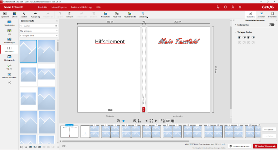 Zunächst einmal Danke für eure Mithilfe und die weiteren Tipps! Reisender hat geschrieben: ich habe vom vorderen Einband eines Fotobuches 2022!!! gesprochen. Dort gibt es ein Foto über die gesamte Seite und ein Textfeld. Es gibt keine gestaltete linke Seite (hinterer Einband). Es können also nicht rechts und links gleichzeitig Elemente kopiert werden.
