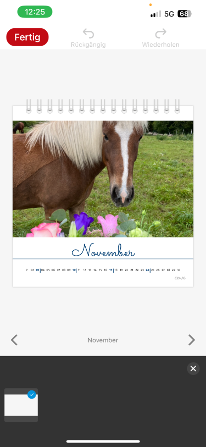 Versionsnummer: cewe fotowelt - Version: 6.4.1 Handelspartner: Cewe Fotowelt Beschreibung: Hallo zusammen! Ich möchte einen Tischkalender designen und habe für die Montate Januar-September 5 Fotos pro Blatt. Als Platzhalter habe ich für die nächsten Montage jeweils 1 Foto eingesetzt. Nun möchte ich dort die vorgesehenen 5 Fotos einsetzen, diese Layout Option wird mir aber nicht mehr angeboten (siehe Screenshot). Was kann ich tun? Vielen Dank! Vorgehensweise: 1. Neustart der App 2. ... 3. ... Re: Kalender Layout ändernHallo Tomke_vW,