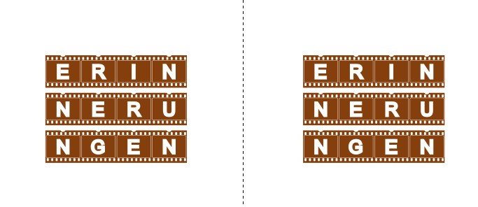 Ich habe soeben versucht den von dir beschriebenen Fehler nachzustellen, doch leider war mir das so nicht möglich - daher habe ich ein paar Rückfragen Handelt es sich um den hier von dir verwendeten Filmstreifen um eine Maske / Clipart aus unserer Software? Und bei den Buchstaben handelt es sich um Bilddateien oder Textfelder? Magst du uns bitte vielleicht kurz beschreiben, wie genau du vorgegangen bist? Liebe Grüße, Lucia Re: V743: Fehler beim Kopieren/Einfügen eines vertikal zentrierten TextfeldesEntschuldigung für das verwirrende Beispiel. Das ist eine Schriftart, die aussieht wie ein Filmstreifen. Hier das gleiche Beispiel noch einmal mit CEWE Head.