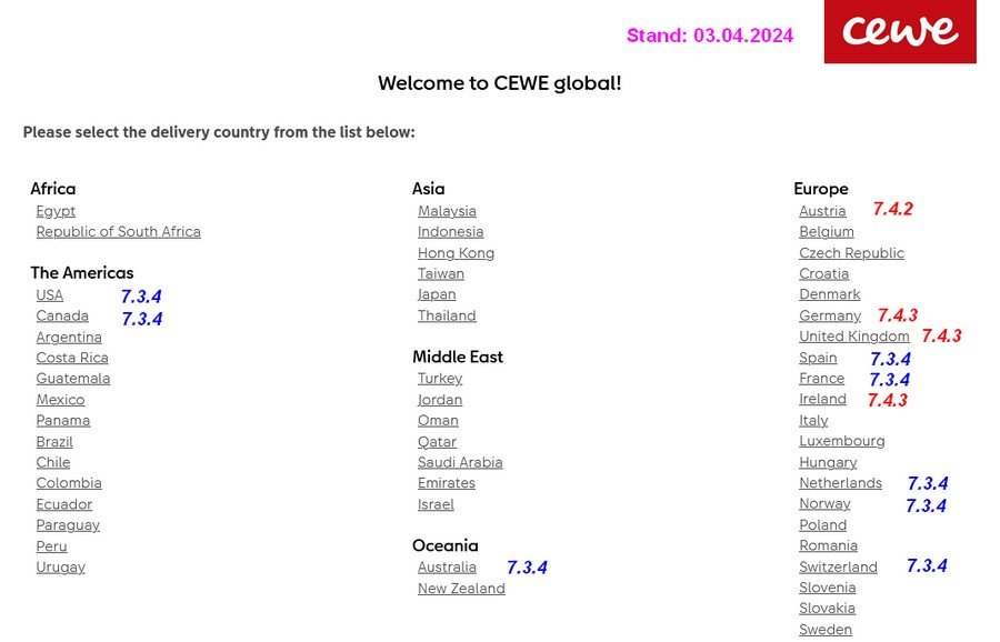 Vielen Dank für ihre Erklärung. Aber es ist mir nicht klar wie ich Version 7.4.0 bekomme. Ich wohne in Kanada und benutze CEWE Global. Das habe ich in https://www.cewe-global.com/ gefunden. Es scheint mir, dass nur Version 7.3.4 vorhanden ist. Am einfachste für mich wäre es wenn CEWE die Version 7.4.0 in CEWE Global hätte.