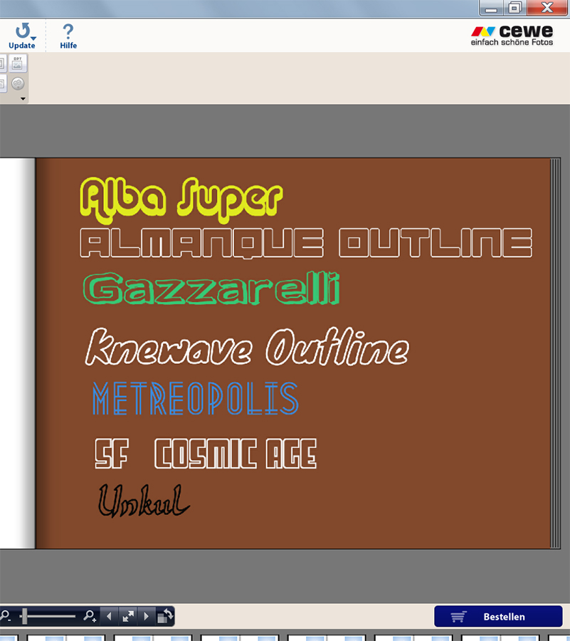 Wir laden Sie herzlich ein, die neue CEWE Community mit integriertem Forum zu entdecken und künftig zu nutzen. Das bisherige Forum, in dem Sie sich gerade befinden, steht nur noch bis Ende 2025 für neue Beiträge zur Verfügung und wird ab dem kommenden Jahr 2026 nur noch lesend zugänglich sein. Informieren und registrieren Sie sich jetzt in der neuen CEWE Community – wir freuen uns auf Sie! Text ohne Textfarbe aber mit farbigem BuchstabenrandBetriebssystem: Windows