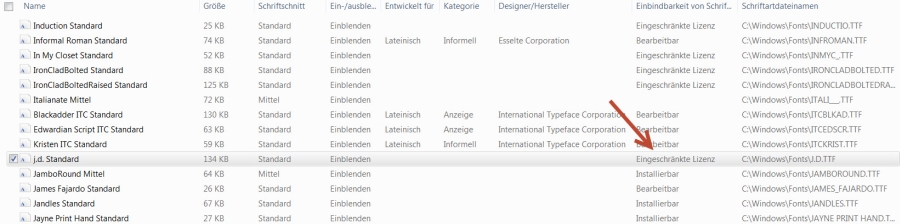 Ich habe soeben j.d. und Arabella in windows/fonts gefunden! Mir ist aufgefallen, dass bei den jeweiligen Schriftarten verschiedene Buchstaben stehen (ich schäme mich direkt, aber ich weiß leider nicht wie man das nennt :( ). Bei diesen beiden Arten steht TT, bei den meisten Anderen ein O, und vereinzelt ein A. Im Cewe Programm kann ich beide Schriften definitiv nicht finden, auch nicht ganz am Ende. Leider! Ich war völlig überrascht, als es hieß die Datei existiert schon. Aber ich habe den Laptop vor Jahren von meinem Sohn "geerbt", d.h. er ist schon ein bisschen in die Jahre gekommen. :roll: geniesser66 VG geniesser66