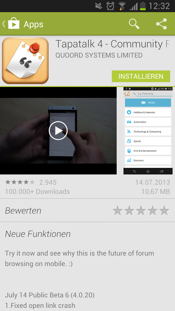 Die kostenlose finden Sie unter der Bezeichnung Tapatalk 4 Community Reader bei Ihrem Anbieter.
