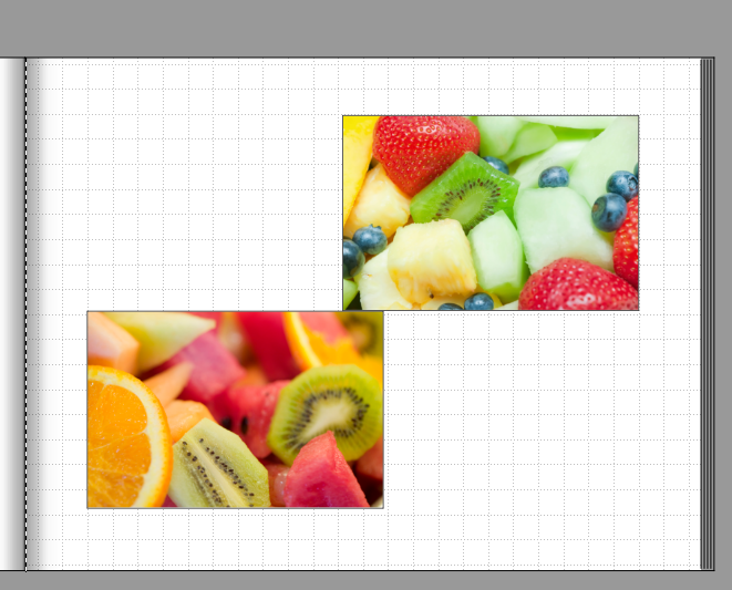 Wenn man jedoch ein oder mehrere Bilder anfasst um zu verschieben wird aus der gestrichelten Linie eine durchgezogene. Man erkennt den Seitenbruch nicht mehr.