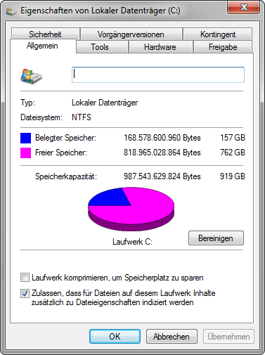 Die Informationen über die Belegung können Sie auch immer mit einem Linksklick auf die gewünschte Festplatte und dann mit dem Anwählen der Eigenschaften überprüfen: Haben Sie weitere Programme geöffnet, während Sie in der Software arbeiten? Sie haben in einem vorherigen Beitrag geschrieben, das diese Fehlermeldung auftritt, wenn Sie ein Bild als Hintergrund einfügen wollen. Können Sie andere Hintergründe verwenden? Und können Sie Ihr Projekt speichern, wenn Sie keine Hintergründe einfügen? Liebe Grüße