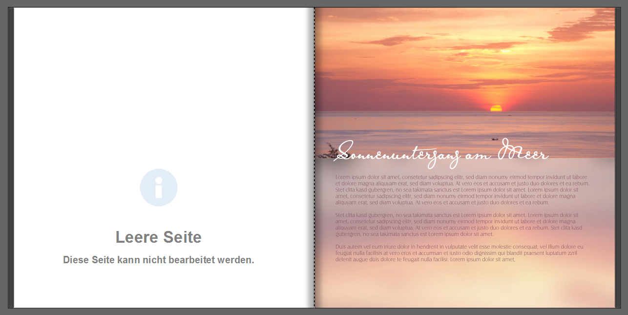 Durch das Spiegeln Ihrer Bilder können Sie beispielsweise spannende Cover gestalten. Oder mit weichzeichnenden und entsättigenden Effekten Hintergründe für Ihre Innenseiten.