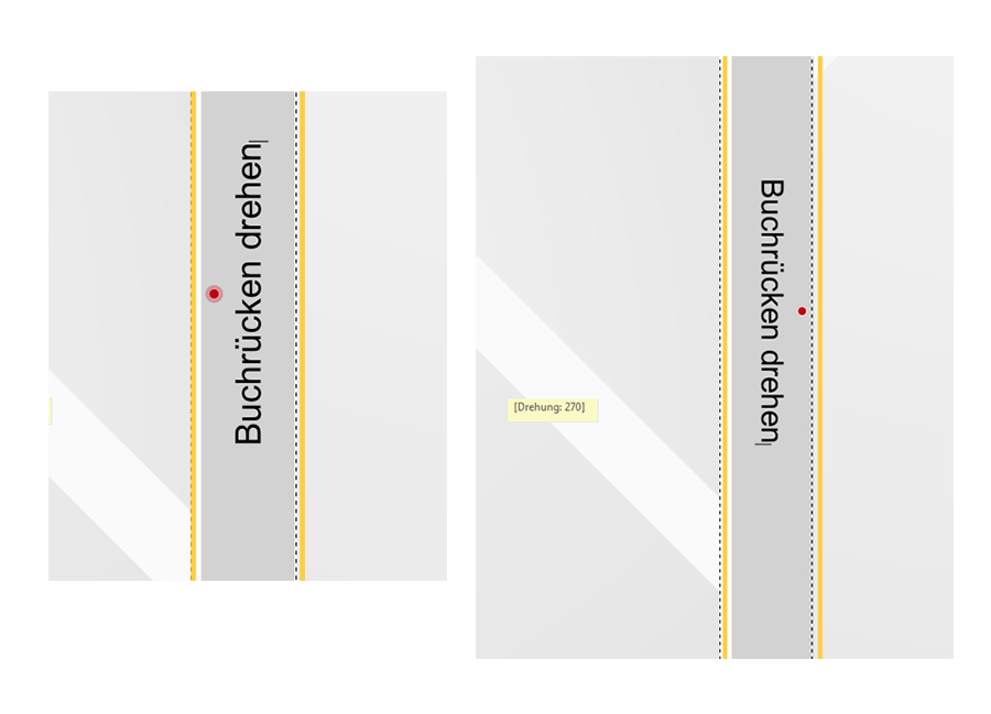 Re: BuchrückenIch kann den Buchrückentext problemlos drehen. Ins Textfeld rechts klicken und im Menü - Rahmen rechts drehen bzw. Rahmen links drehen wählen.