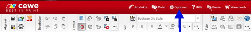 zuerst einmal willkommen im Forum. Ich gehe einmal davon aus, daß Du eine CEWE-Fotobuchsoftware hast. Der Oberste Bereich sollte dann so aussehen: Wenn Du dieses Menue öffnest, dann findest Du bei "über" die Versionsnummer des Programmes. Die wäre wichtig für alle weiteren Fragen. Im Punkt Allgemein der Optionen findest Du die Möglichkeit "Assistent bei Fotobüchern automatisch starten". Wenn dort das Häkchen entfernt wird, dann wird er Assistent beim öffnen des Programmes nicht gestartet. Und im übrigen lohnt sich ein Blick in die Hilfe. Re: LOB für CEWEHallo Buch-Neuling,
