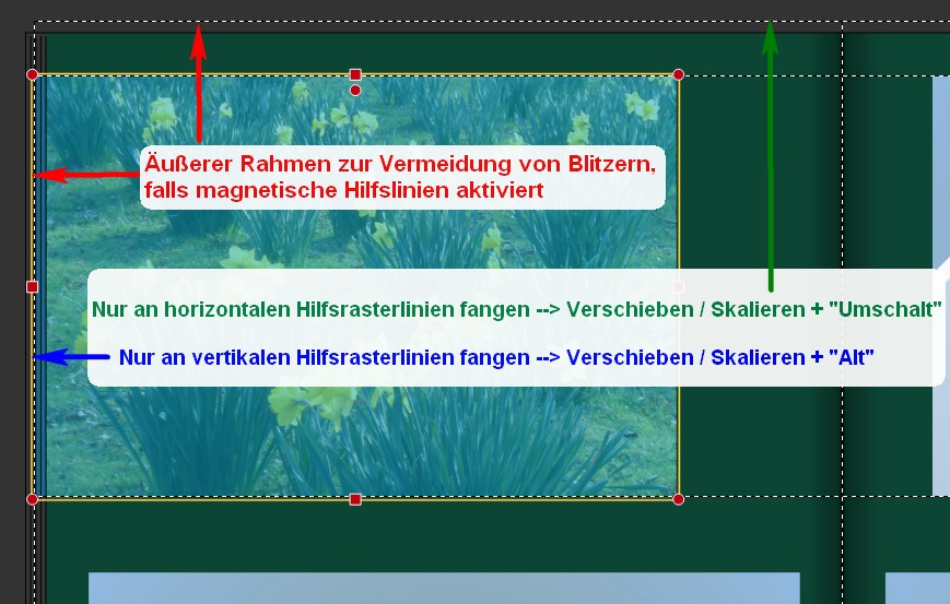 sehe ich auch nur die Kombination zusammen mit den magnetischen Hilfslinien. Wenn man ein Bild zum Beispiel nur links ausreichend weit über den Rand ziehen möchte (mittels der magnetischen Funktion), kann man dafür beim Verschieben die Alt-Taste gedrückt halten. Vertikal bleibt der Rahmen dann, wo er ist bzw. ist frei beweglich. vgl. auch Josefias tolle Zusammenstellung der: Shortcuts / Tastenkürzel