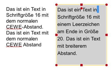 Wenn Du den Abstand vergrößern möchtest, kannst Du Dich eines Tricks bedienen und z.B. in jeder Zeile am Ende ein Leerzeichen ergänzen. Für dieses änderst Du die Schriftart um ein paar Punkte nach oben Der Dateianhang Text_neu.jpg existiert nicht mehr.