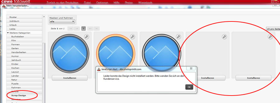 Versionsnummer: 6.0.2 Beschreibung: Beim Kennenlernen der ungebrandeten Version 6.0.2 wollte ich auch zusätzliche Masken und Rahmen downloaden. Dabei fiel mir auf, dass einige Kategorien folgende Fehlermeldung produzierten: - Garten - Handarbeiten - Jahrbuch - Kochen - Länder - Scrap Design - Weihnachten - Urlaub Jeweils ein oder mehrere Vorschaubilder waren leer. Zusätzlich fiel auf, dass trotz Auswahl "Masken" (also ohne Rahmen) alles downgeloaded wird - die Auswahl ist also nur fürs Anschauen da! Liebe Grüße