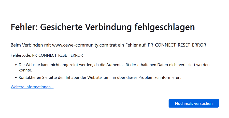 Bei mir erscheint immer noch die Lade-Fehlermeldung auf der Community.com Webseite. Bei euch auch? Gruß