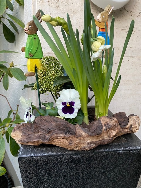 Re: OstergrüßeLiebe Ostergrüße auch von mir! Bei mir trifft sich ein nicht mehr ganz taufrischer Weihnachtsstern mit den Osterhasis.
