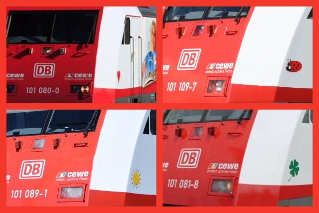Am 24. Mai habe ich endlich mal wieder hautnah die ganz besondere Atmosphäre von Bahnanlagen erlebt. Dazu gehörte der Streifzug durch einen "Lokschuppen" ebenso wie das "wagemutige" Herumstolpern zwischen den Gleisen des Bahnbetriebswerkes in Hamburg-Eidelstedt. Anlass war die offizielle Präsentation von 4 elektrischen Loks der Baureihe 101, die jetzt mindestens deutschlandweit als rollende Werbeträger für "Mein CEWE Fotobuch" unterwegs sind. Dank einer Einladung von CEWE hatte ich Gelegenheit, bei der offiziellen Präsentation der Werbeloks dabei zu sein. Eines der rot-weißen Ungetüme war übrigens gerade irgendwo im Bahnnetz im Einsatz, zwei weitere standen aber fertig ausstaffiert als Fotomodell zur Verfügung und besonders interessant: Die vierte Lok haben wir sozusagen als Rohling vorgefunden und konnten verfolgen, wie sich diese im Laufe eines Vormittages relativ zügig in ein Fotobuch verwandelte Erste Vorbereitungen im Lokschuppen Zunächst muss der Untergrund, auf den die bereitgestellten Klebefolien aufgebracht werden, flächendeckend gereinigt werden. Das "Tapezieren" gemäß Fertigungsplan beginnt. Für die Fachleute ist es natürlich kein Problem, die Folien blasen- und faltenfrei aufzukleben. Während in der Halle eifrig weiter gewerkelt wird, werden auf den Gleisanlagen des Hamburger Bahnbetriebswerkes zwei bereits fertiggestellte Schmuckstücke präsentiert. Nach einer zünftigen Loktaufe (die Patin Sylke mit einer Flasche Sekt vornahm Echte Bahnfreaks identifizieren die Loks der Baureihe 101 natürlich durch die 7-stellige Loknummer. Für weniger Geübte hat man sich ein besonders plakatives Unterscheidungsmerkmal für die CEWE-Loks ausgedacht: