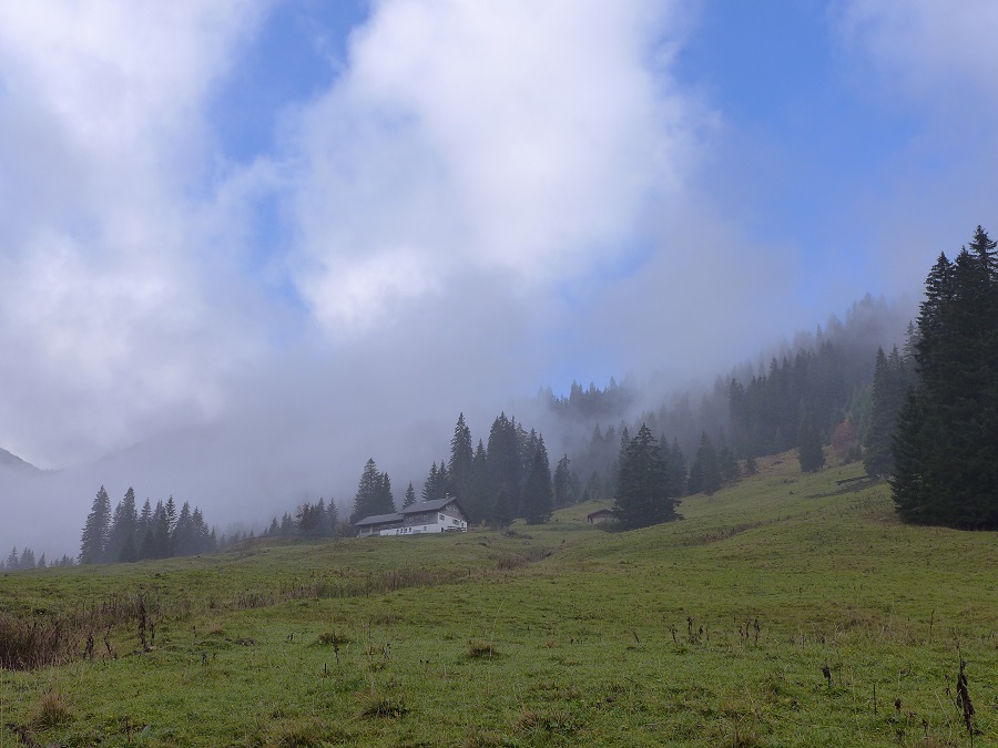 Re: Challenge 10/2016 • Schau nach oben!Die Edenbachalpe im Tannheimer Tal im morgendlichen Nebel: