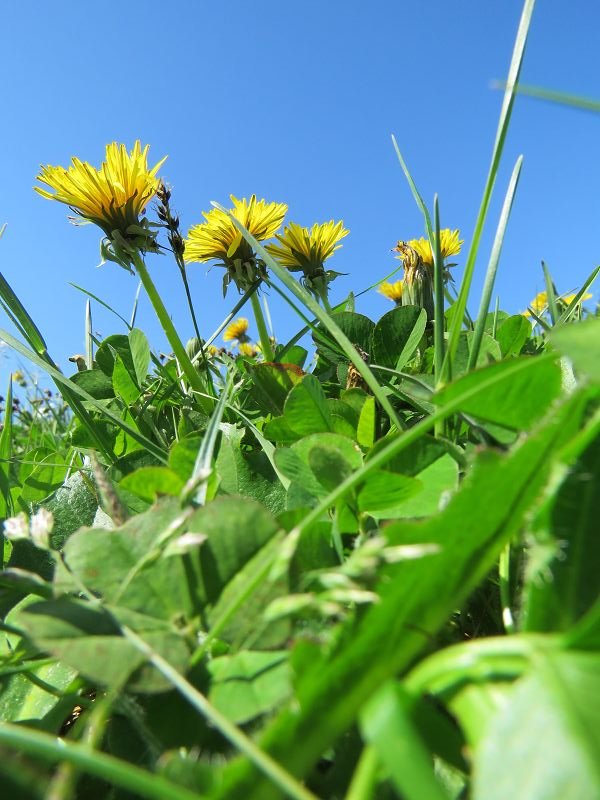 Spica Re: Alles neu macht der Mai - und wir machen eine neue Foto-ChallengeAlso mein Frosch sitzt im tiefen Gras und schaut durch die Gräser und Kleeblätter neugierig auf den Löwenzahn hinauf. Vielleicht sitzt dort oben noch eine Fliege.