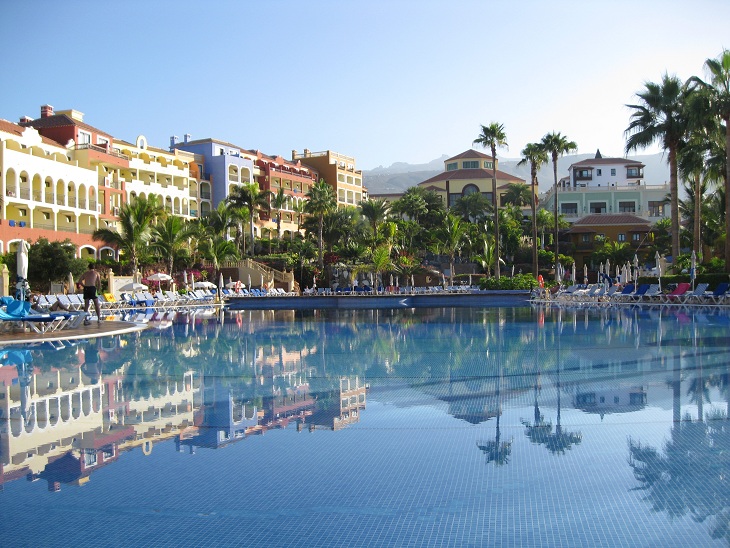 Hotelanlage spiegelt sich im Pool