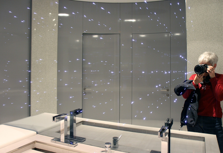 Sogar im Waschraum der Toilette wird das Objektiv zur Reflex-Schleuder. Das Bild ist nicht manipuliert - alles echt!
