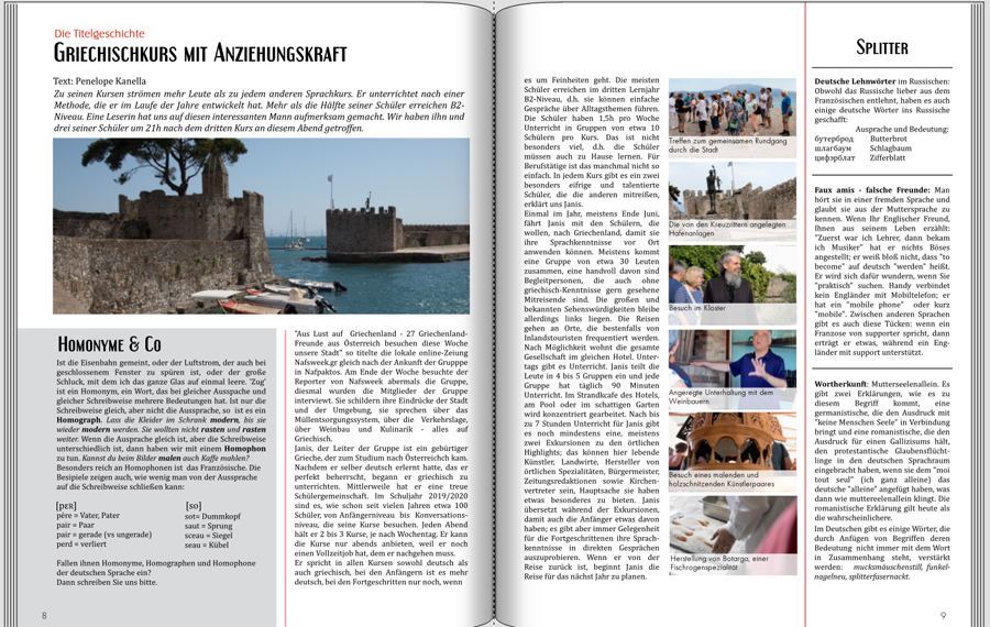 Leider lässt meine Zeit es im Augenblick nicht zu, mich weiter dieser Aufgabe zu widmen, da ich weiterhin jeden Tag zur Arbeit gehe und wir mehr als genug zu tun haben. Da bin ich abends wie erschlagen Aber eure Ideen haben mich auf jeden Fall inspiriert, irgendwann mal ein Magazin über meine Heimatstadt zu gestalten LG