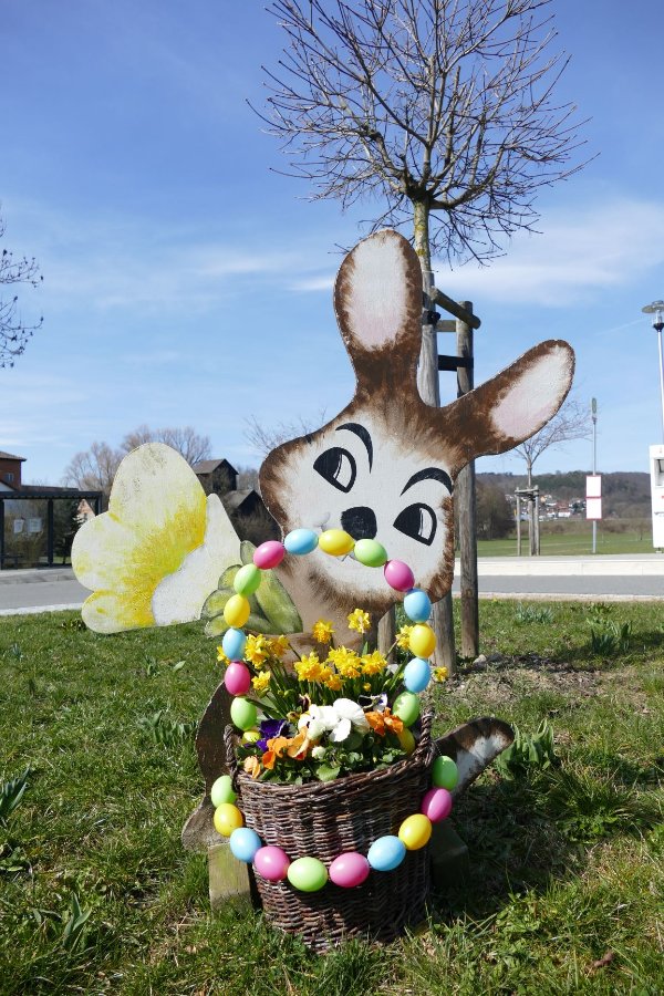 Re: Ei, Ei, Ei ein Ei dem anderen - 5. AprilHäschenpaar im Blumentopf begrüßt die Besucher.