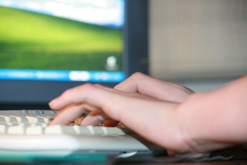 Am kleinen Laptop für unterwegs.