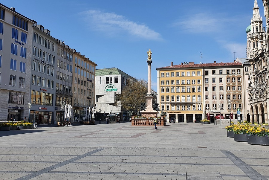 Fokussy Re: Challenge 04/2020 • StadtgesichtMorgens um 11:15 am Marienplatz in München - normalerweise ist hier um diese Zeit der Bär los. Corona lässt grüßen.