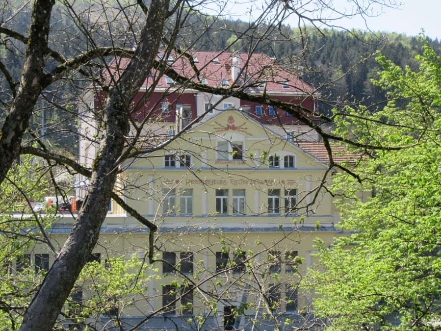 cracde Re: Challenge 04/2020 • Stadtgesicht4) Das Kaiserjubiläumselektrizitätswerk war einmal ein schönes Jugendstilgebäude. Auf der Straßenseite ist jegliches Dekor abgeschlagen worden. Nur auf der Flussseite kann man noch etwas von der ehemaligen Eleganz erahnen. Inzwischen ist aber diese Ansicht sicher schon hinter einer grünen Blätterwand verschwunden.