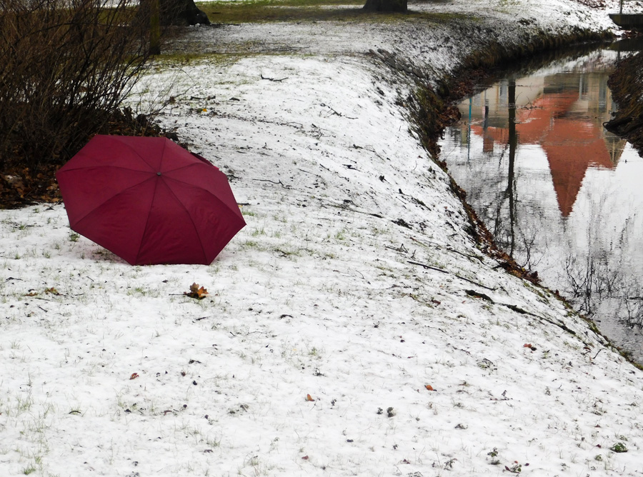 das tun auch Schirme an den Mützen Re: Challenge 02/2019 • I'm singing in the rain!Ich habe heute mal das winterliche Wetter genutzt und einen kleinen Spaziergang mit einem Regenschirm (sozusagen einen "Immer-mit-dabei" Spaziergang) unternommen. Leider ist der gestrige Schnee schon wieder an vielen Stellen geschmolzen... (Gestern hatte ich für eine Fototour keine Zeit, da ich Dienst hatte.)
