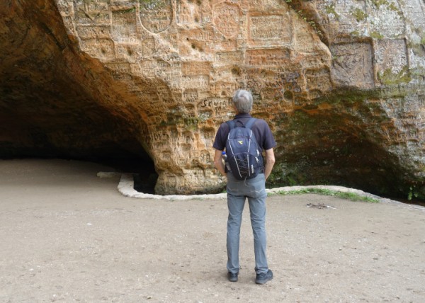 Seit dem 19. Jahrhundert bedecken Inschriften und Initialen verliebter Paare die Felswände.