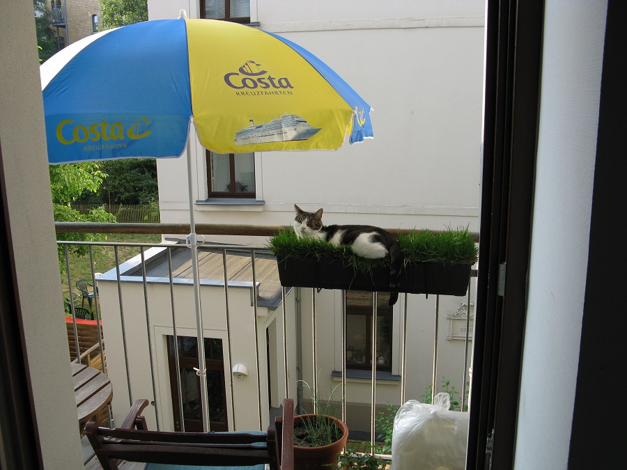 Ob hier der Schirm Teil der Installation oder schlicht Schattenspender war, lässt sich nicht sagen. Liebe Grüße